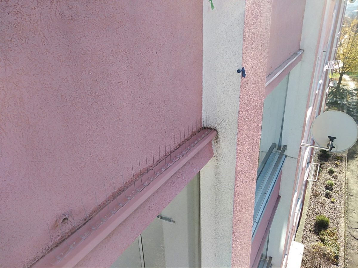 Na okapnice balkónů jednoho z pražských SVJ jsme instalovali hroty proti holubům. Důvodem bylo, jak jinak, znečištění všech balkónů níže. Celá akce probíhala horolezeckou technikou, nebylo tak třeba přítomnosti nájemníků dotčených balkónů. Průběh byl klasický – očistit a odmastit ošetřované plochy a poté nalepit hrotový systém.