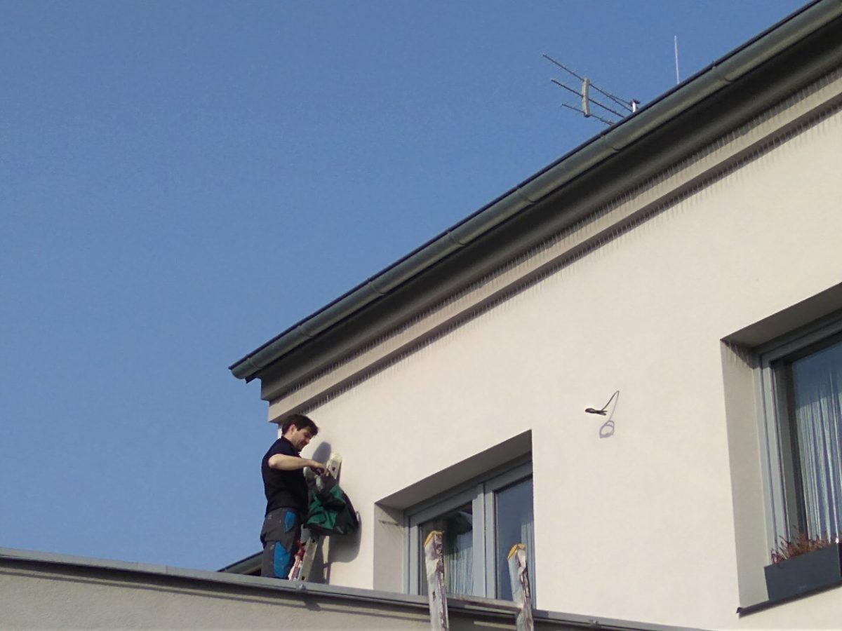 Tentokráte jsme vyjeli do nedalekých Úval ochránit fasádu nového domu v Úvalech proti hnízdění jiřiček. V loňském roce se objevila první hnízda a majitelé se rozhodli svoji nemovitost proti těmto milým, leč na fasádě nežádoucím, nájemníkům ochránit. Zima nebo brzké předjaří je ideální dobou. Jiřičky jsou totiž chráněné a jejich likvidace nebo likvidace hnízd během hnízdění je proto trestné. A co si budeme povídat – taky necitlivé. Z tohoto důvodu je vhodné vše provést po jejich odletu a dříve, než se vrátí. Hrotový systém ptákům nijak neublíží, pouze jim zabrání v zahnizdění v ošetřených místech.