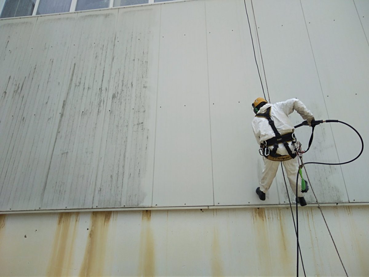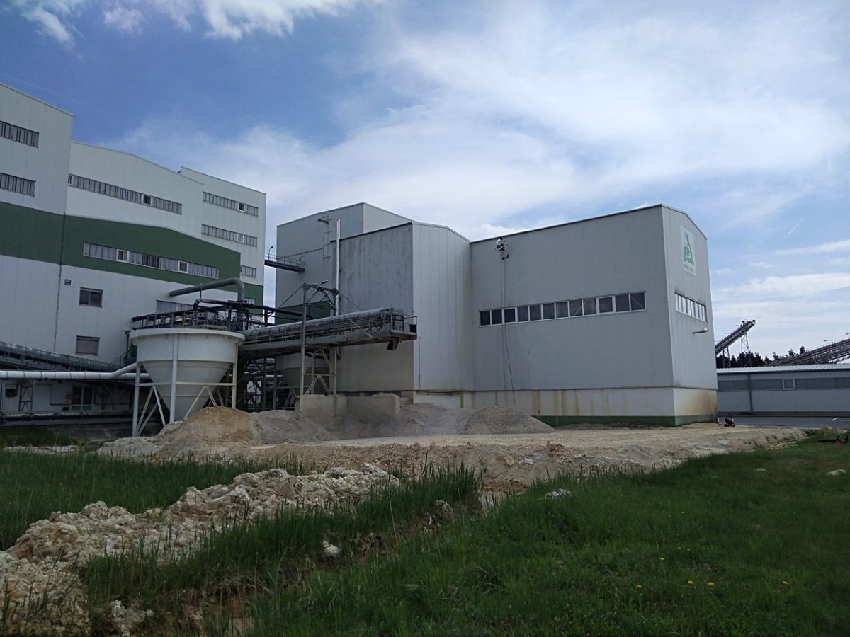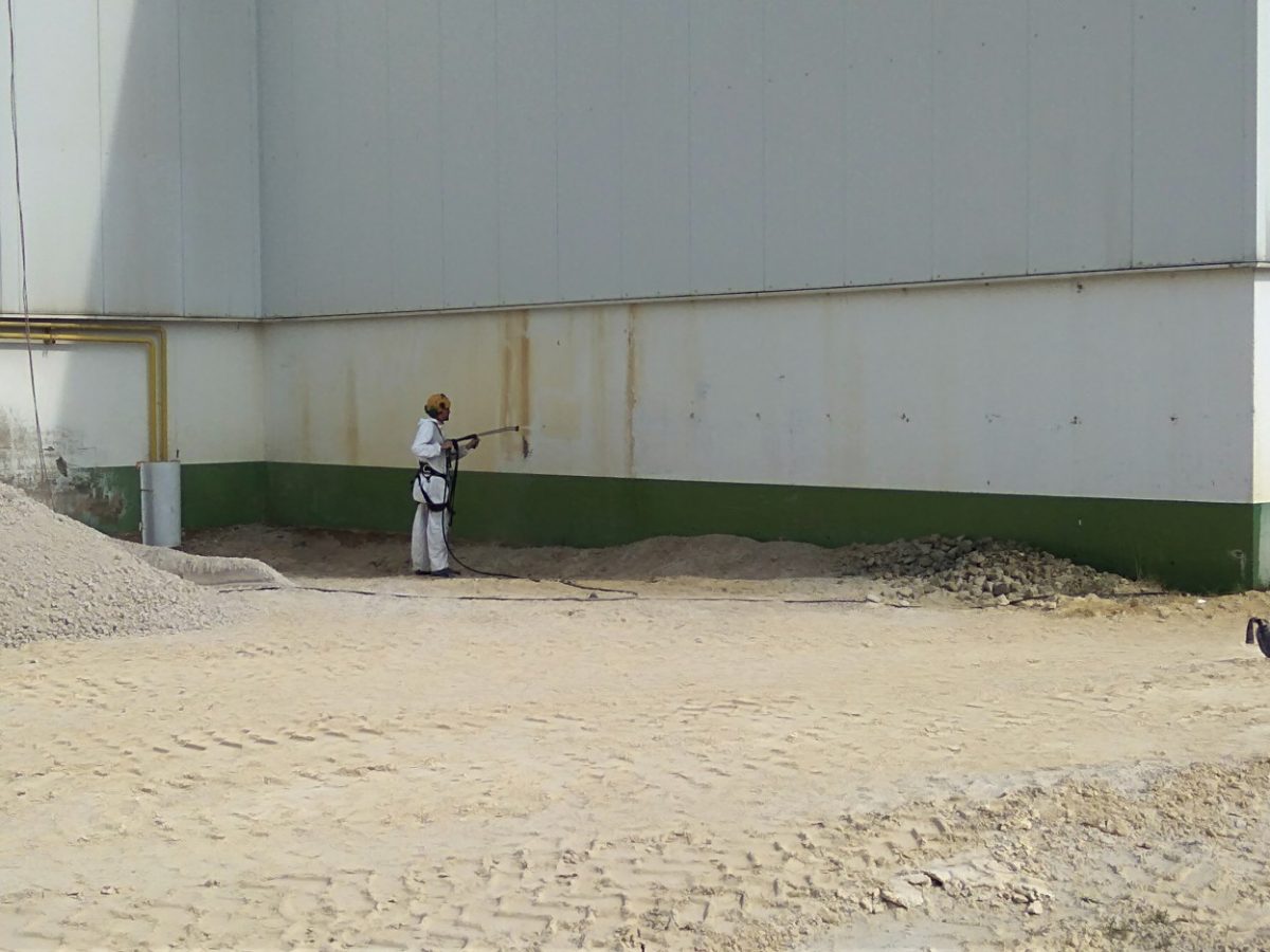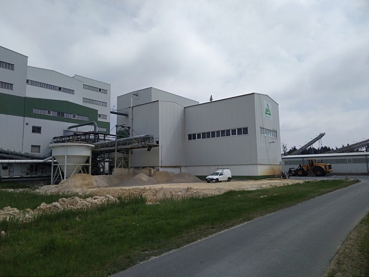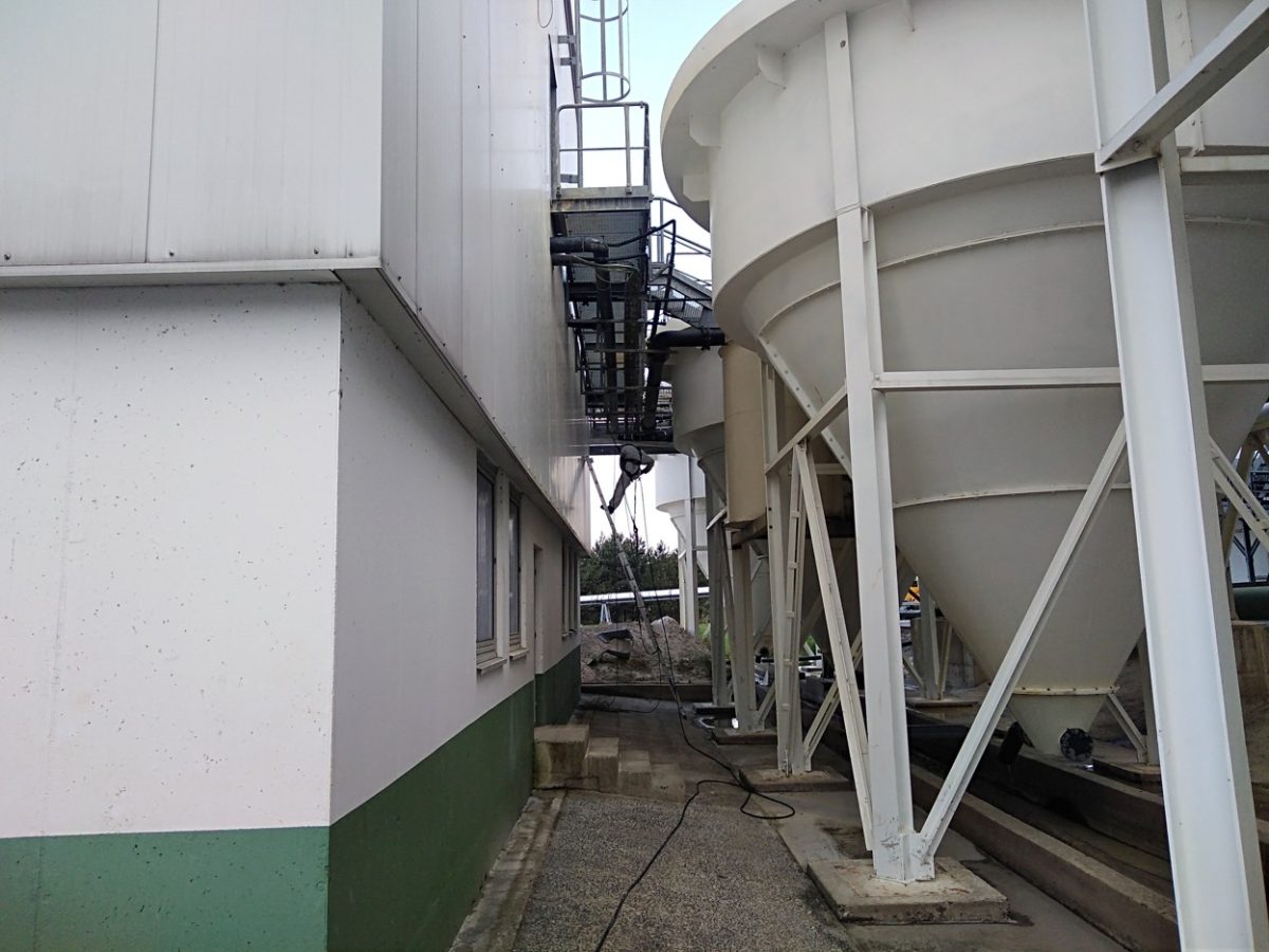 Od provozovatelů pískovny jsme dostali zakázku na umytí objektu úpravny písků. Celá plocha fasády byla silně znečištěna řasami a plísněmi, které bylo potřeba odstranit kvůli návštěvě zahraničního vedení firmy. Práce probíhaly dle podmínek buď horolezeckou technikou nebo ze žebříku. Pouze několik málo metrů bylo možno omýt z lávky.