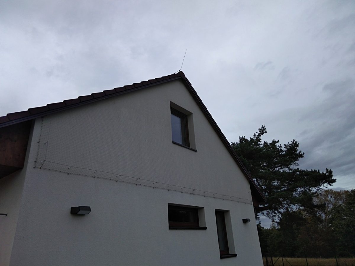 Velmi netradiční poptávku, týkající se ochrany proti ptactvu jsme realizovali v nedávné době. Na zateplené fasádě rodinného domu začal škodit strakapoud. Majitelé se rozhodli jít nejefektivnější cestou – tj.mechanickým zabráněním přístupu ptáků k fasádě. Tou je montáž ochranné sítě. Ačkoli je tato metoda de facto jediná 100% účinná, skýtá zase jiné nevýhody. I přesto, že je síť málo viditelná, na takovéto ploše zkrátka vidět bude a po čase může dojít k usazování nečistot na vlákna. Je proto nutné zvážit všechny plusy a mínusy již před samotnou instalací.