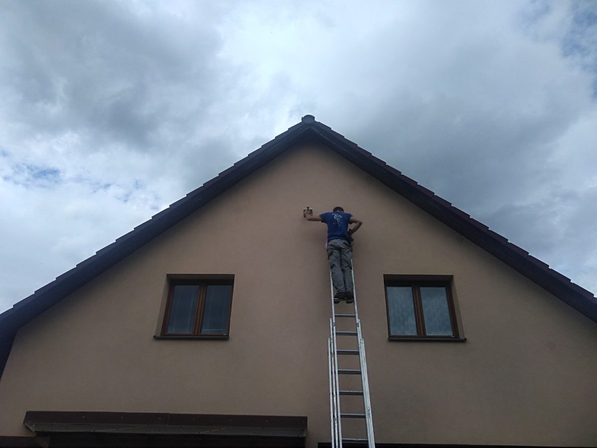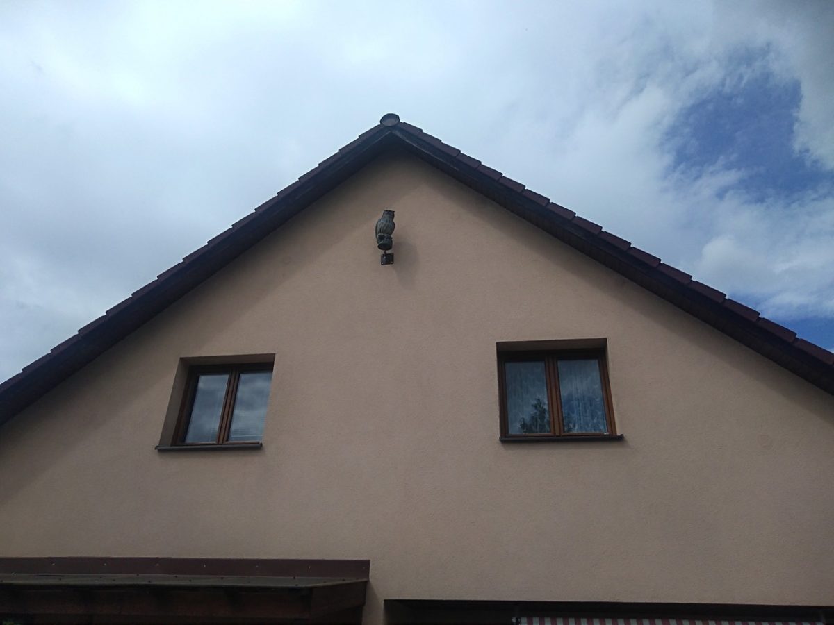 Poškození zateplené fasády datlovitými ptáky, zejména pak strakapoudy a žlunami, je v dnešní době již běžná, ač nepříjemná realita. Tentokrát jsme opravovali fasádu rodinného domku, kde se díry objevily v obou štítech. Na přání zákazníka jsme pak rovněž nainstalovali makety výra velkého. Oprava proběhla klasickým způsobem – více se můžete dočíst zde.