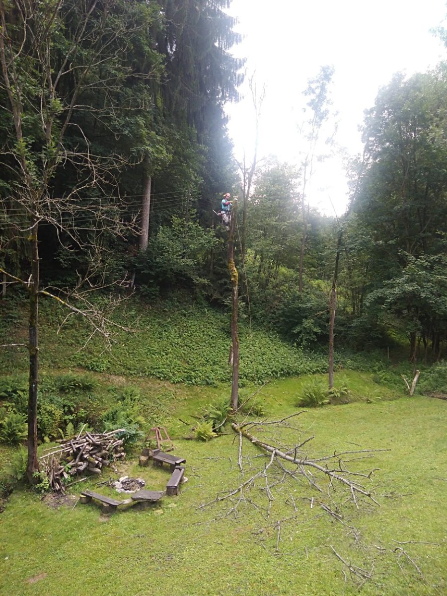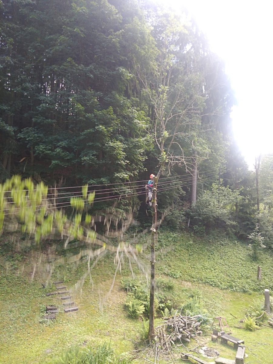 Tentokráte jsem s kvůli rizikovému kácení stromů zajížděl na samotu kousek od Turnova. Na konci malého zařízlého údolíčka se krčila roubenka a v jejím okolí byly k pokácení 2 umírající jasany(pravěpodobně napadené nekrózou) a jeden smrk. Vzhledem k blízkosti elektrického vedení bylo nutno být při kácení obzvlášťě opatrný. Vedení naštěstí nebylo až tak blízko, že by bylo nutné žádat energetiky o přerušení dodávek proudu či dokonce o sundání drátů.