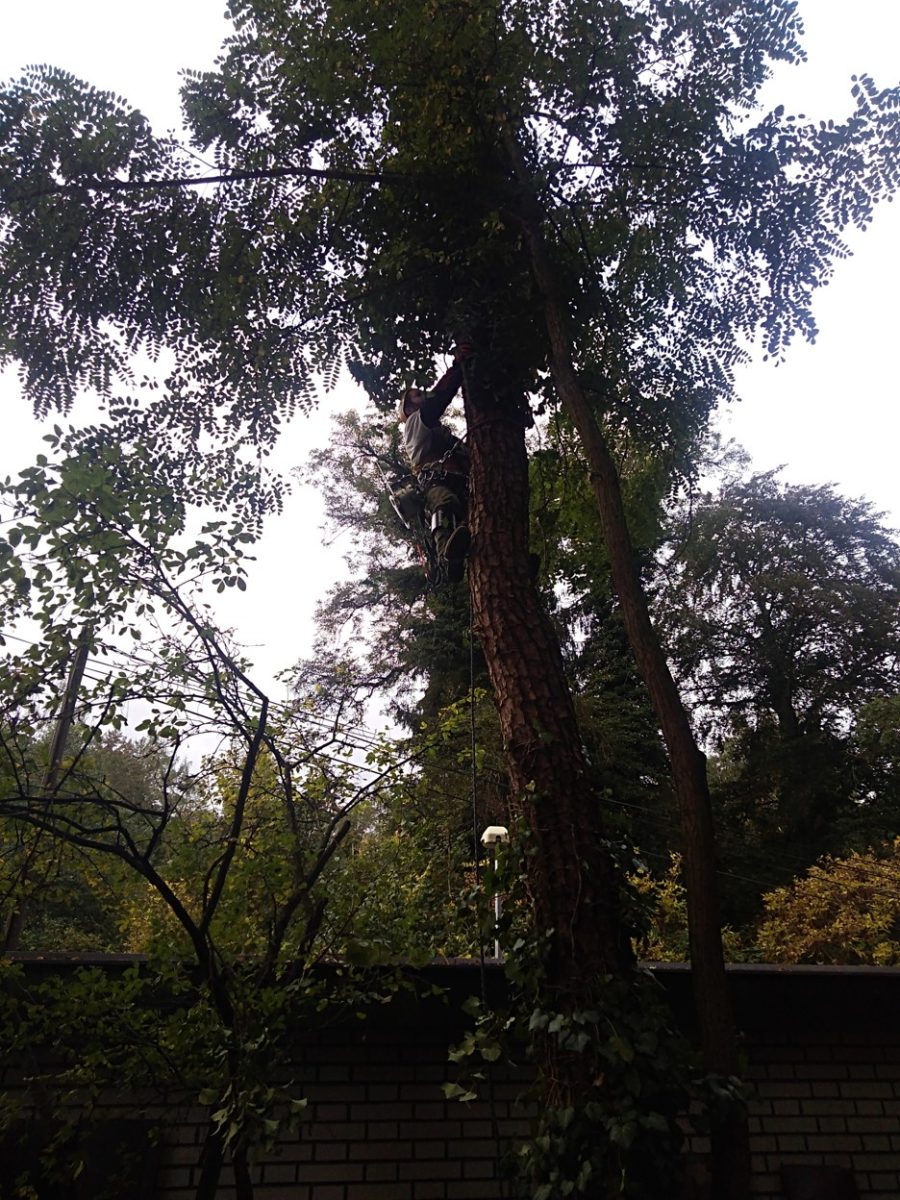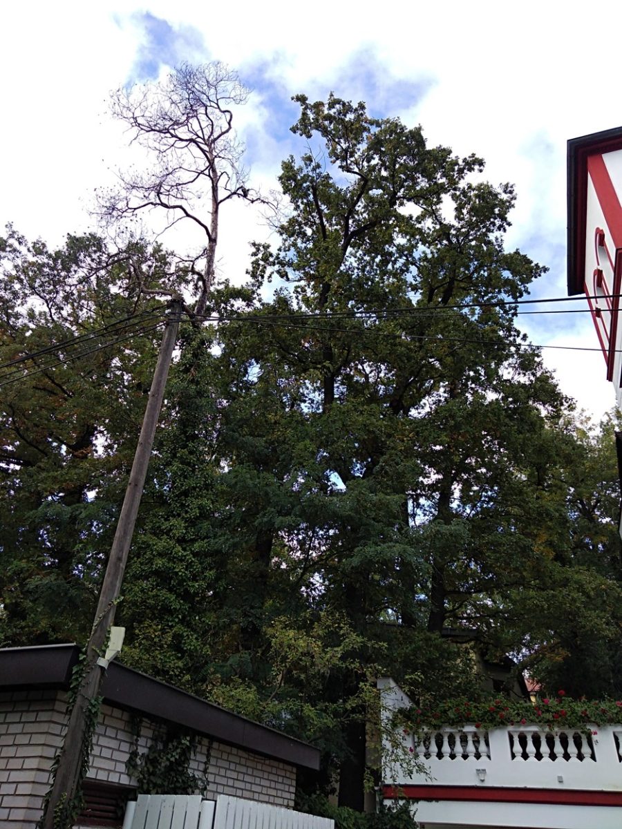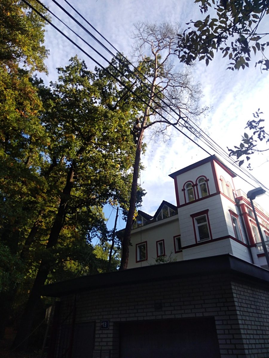 Kácení suché borovice jsme tentokrát prováděli v areálu Diagnostického ústavu v pražských Hodkovičkách. Vzhledem ke stavu stromu, pod ním se nacházející garáži a blízkosti elektrického vedení se jednalo o jedno z dobrodružnějších kácení, neboť u suchých stromů může být stabilita narušena, byť se to třeba na první pohled nezdá. O to nepříjemnější je pak nutnost chytání špalků do kmene. Nicméně vše se nakonec povedlo bez škod na zdraví a majetku a my si tak mohli připsat další úspěšný výjezd.